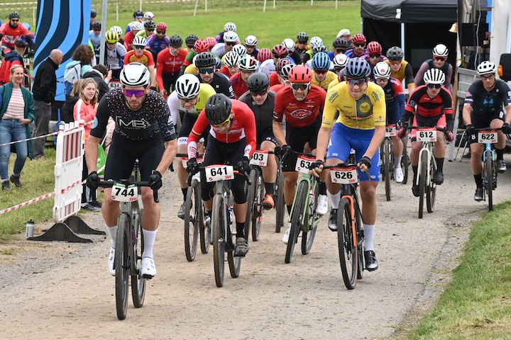 Nachdem ich im Sommer irgendwie nie voll in Schwung kam und dann auch noch letzte Woche aus familiären Gründen die Gravel EM ins Wasser fiel, war dieser zweiter Platz ein wenig Balsam für die Seele. Auch wenn ein kleines Rennen, am Start stehen alle mit dem Messer zwischen den Zähnen und gerade auf kürzeren Distanzen (50km) macht es mir die Jugend in der Regel richtig schwer. Doch heute lief es von Beginn an Sahne und mit Matze Bettinger macht am Gashahn drehen eh immer Spaß. Wir beide sorgten für Tempo und so waren wir nach etwas 20min. nur noch zu dritt...